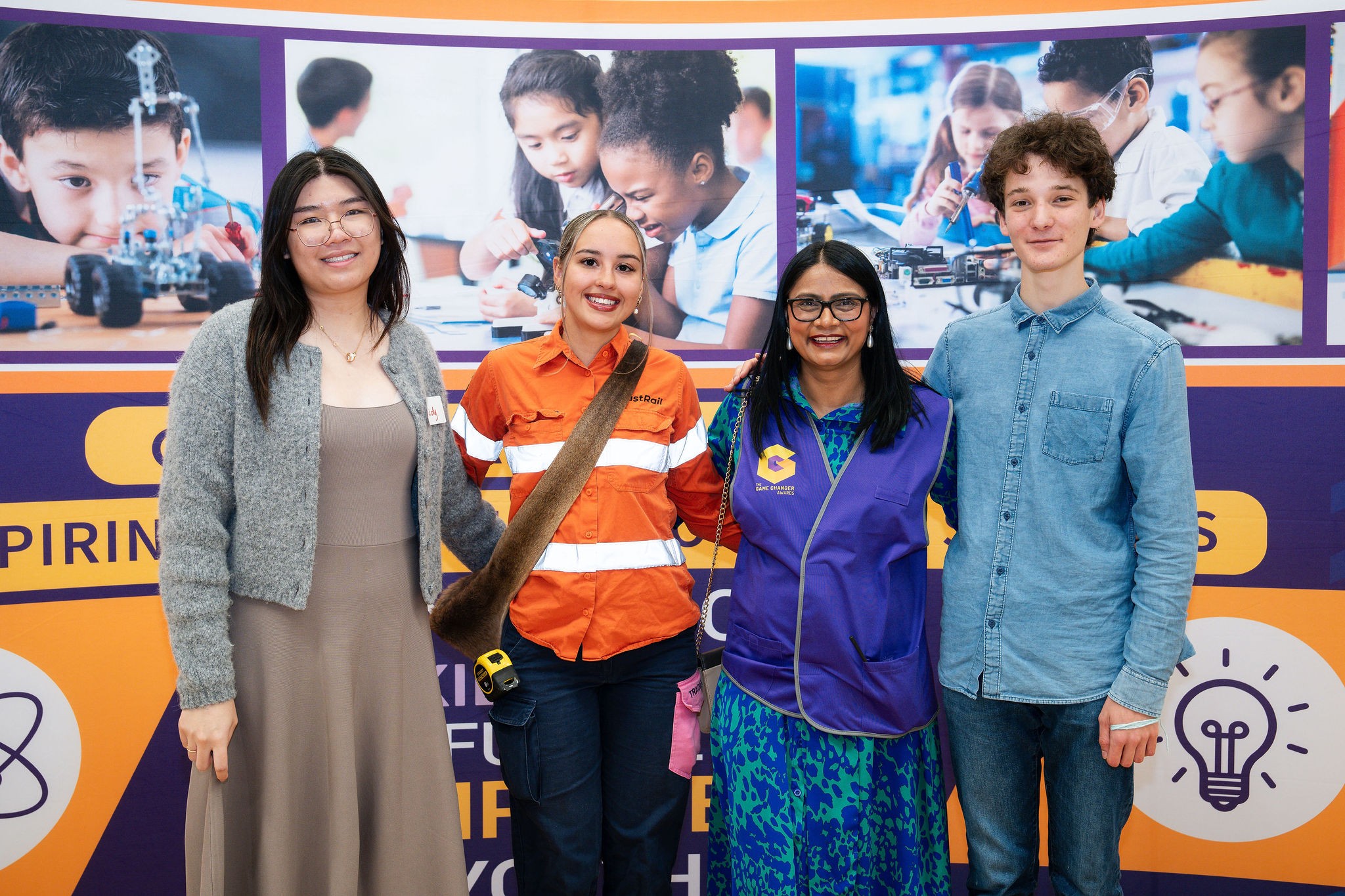 Guest speaker Cassidy Morgono, Aaliyah Nestoridis-Culbong (MC), Premila Jina (Chair) and Jamie Erak (MC) at the 2025 Game Changer Awards.